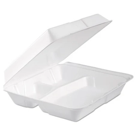 The hinged lid with secure closure ensures a tight seal, preventing accidental opening and spills during transport while allowing for easy closing and opening. Designed with a perforated edge, it allows customers to remove the lid from the base if desired, providing flexibility and convenience. Best of all, this disposable foam container boasts high insulation to keep food at the perfect temperature as well as a non-absorbent construction to prevent leaks and mess.