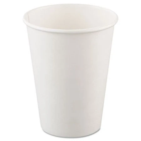 Single-Sided Poly Paper Hot Cups, 12oz, White, 50/Bag, 20 Bags/Carton. Polycoated paper cups are designed to hold hot beverages. Heat-sealed seams and interlocked bottoms prevent leaks and help retain heat. Excellent for serving coffee, tea, hot chocolate or just about any hot beverage. Cup Type: Hot; Capacity (Volume): 12 oz; Material(s): Paper; Color(s): White.