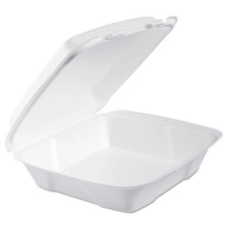 Product Details for Dart White Foam Hinged Lid Containers, 9″ x 9″ x 3″, 200/Carton