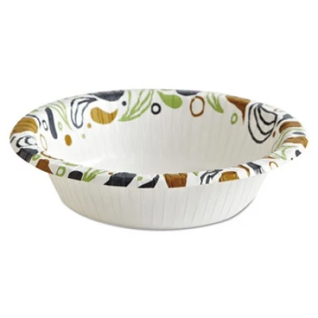 Deerfield Printed Paper Bowl, 12 oz, Coated/Soak Proof, 125 Bowls/Pack, 8 Pks/Ct. Stylish paper dinnerware, with attractive design provides an upscale, modern look. Great for special events, catering, office settings and more! Coated and soak proof. Conveniently disposable.