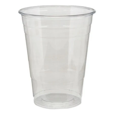 Clear Plastic PETE Cups, Cold, 16oz, 25/Sleeve, 20 Sleeves/Carton. Safe, disposable and attractive alternative to glass. Strong, durable, flexible PETE cups are shatter-resistant. Cup Type: Cold; Capacity (Volume): 16 oz; Material(s): PETE Plastic; Color(s): Clear.