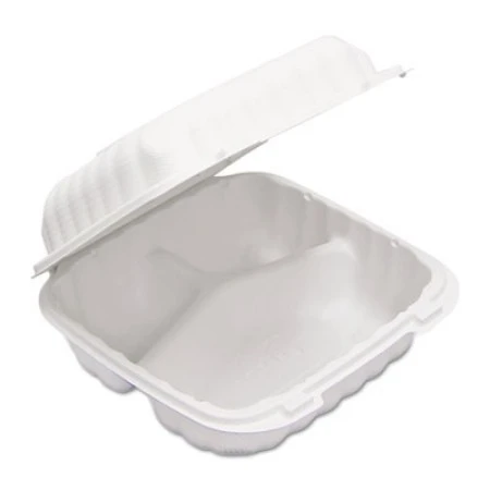 Thanks to its three separate compartments, these hinged lid containers are great for keeping entrees and side dishes separate while it’s SmartLock® design keeps the container securely closed to preserve freshness. Best of all, these containers reduce your establishment’ carbon footprint.
