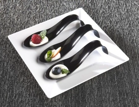 Impress your guests by serving petite appetizers, sushi, or soup spoons on the Emi Yoshi EMI-617 Small Wonders Plastic Crescent Spoon 5″. Boasting an upscale appearance without the risk of breakage, this plate puts your specialty dishes on center stage.