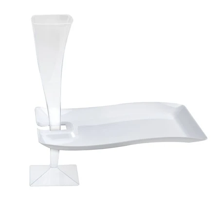 Product Details for Fineline Settings Wavetrends White Rectangular Plastic Cocktail Plate with Stemware Hole 6″ x 9-1/2″