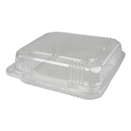 Plastic Clear Hinged Containers, 8 x 8, 50 oz, Clear, 250/Carton. Duralock OPS clear hinge containers are great for grab and go meals. Food Container Type: Plastic Carryout with Lid; Material(s): Plastic; Capacity (Volume): 50 oz; Color(s): Clear.