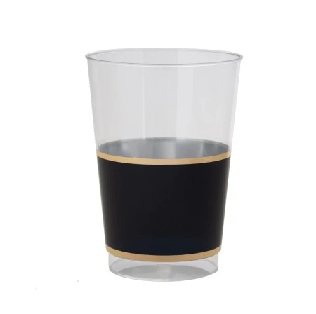 Product Details for TigerChef Black and Gold Band Plastic Cups 12 oz.