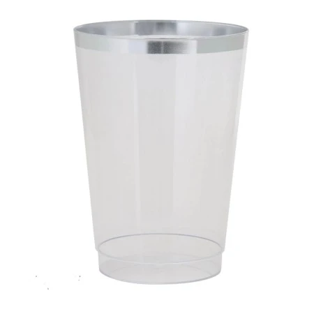 Product Details for TigerChef Clear Plastic Tumblers with Silver Trim 12 oz.