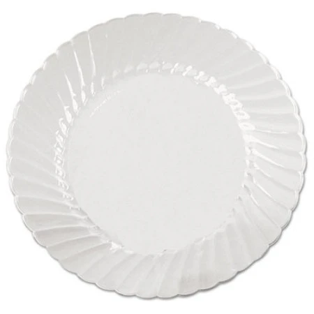 Classicware Plates, Plastic, 6 in, Clear, 18/Bag, 10 Bag/Carton. Stylish plastic dinnerware is made to be sturdy. Presents the elegance of china in a more durable plastic form. Provides the convenience of easy cleanup and disposability. Adds a touch of grace to any occasion. Dinnerware Type: Plate; Material(s): Plastic; Shape: Round; Diameter: 6″.